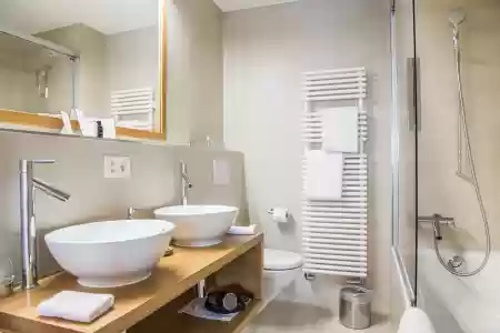 Elle est même particulièrement confortable – notre plus petite chambre ressemble presque à une authentique «Schlafschtuba» Vous n’avez bien entendu pas besoin de renoncer à tout le confort habituel!